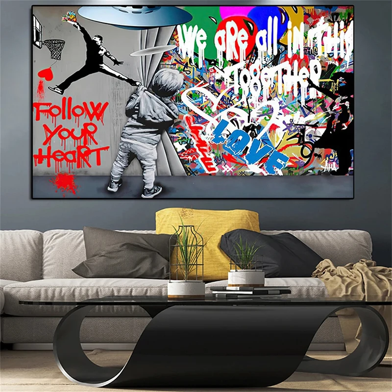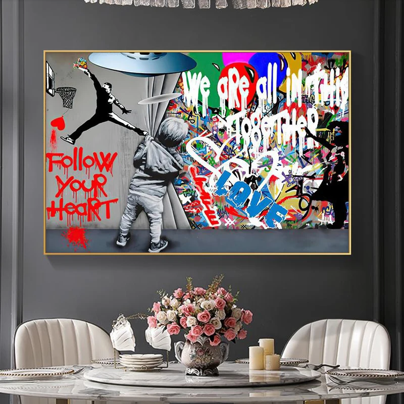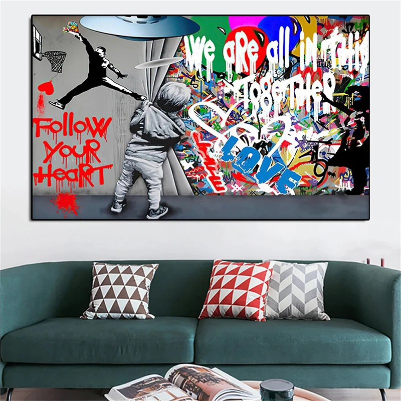 Бэнкси Искусство граффити Любовь Сердце жест Холст Картина улица ст...