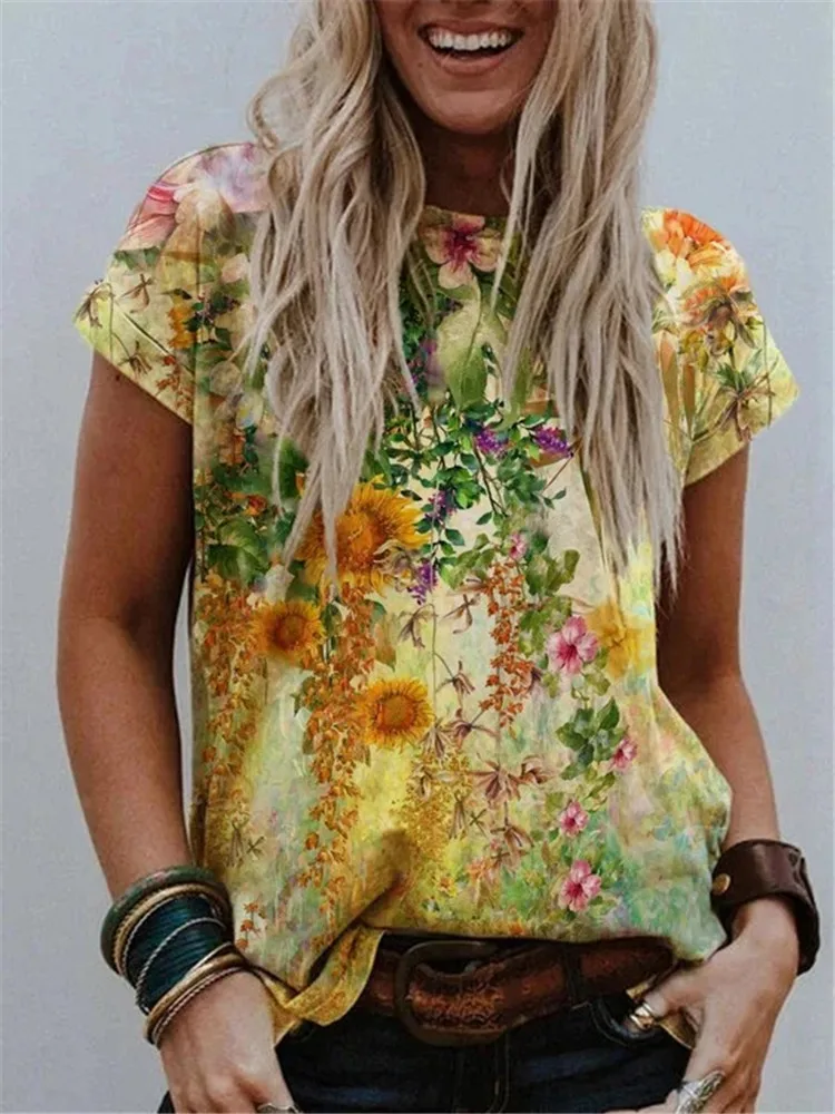 Женская Винтажная футболка с коротким рукавом, свободная повседневн...