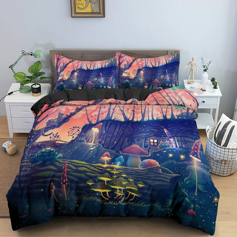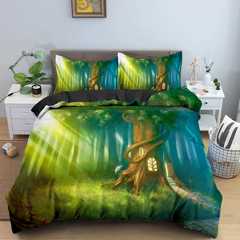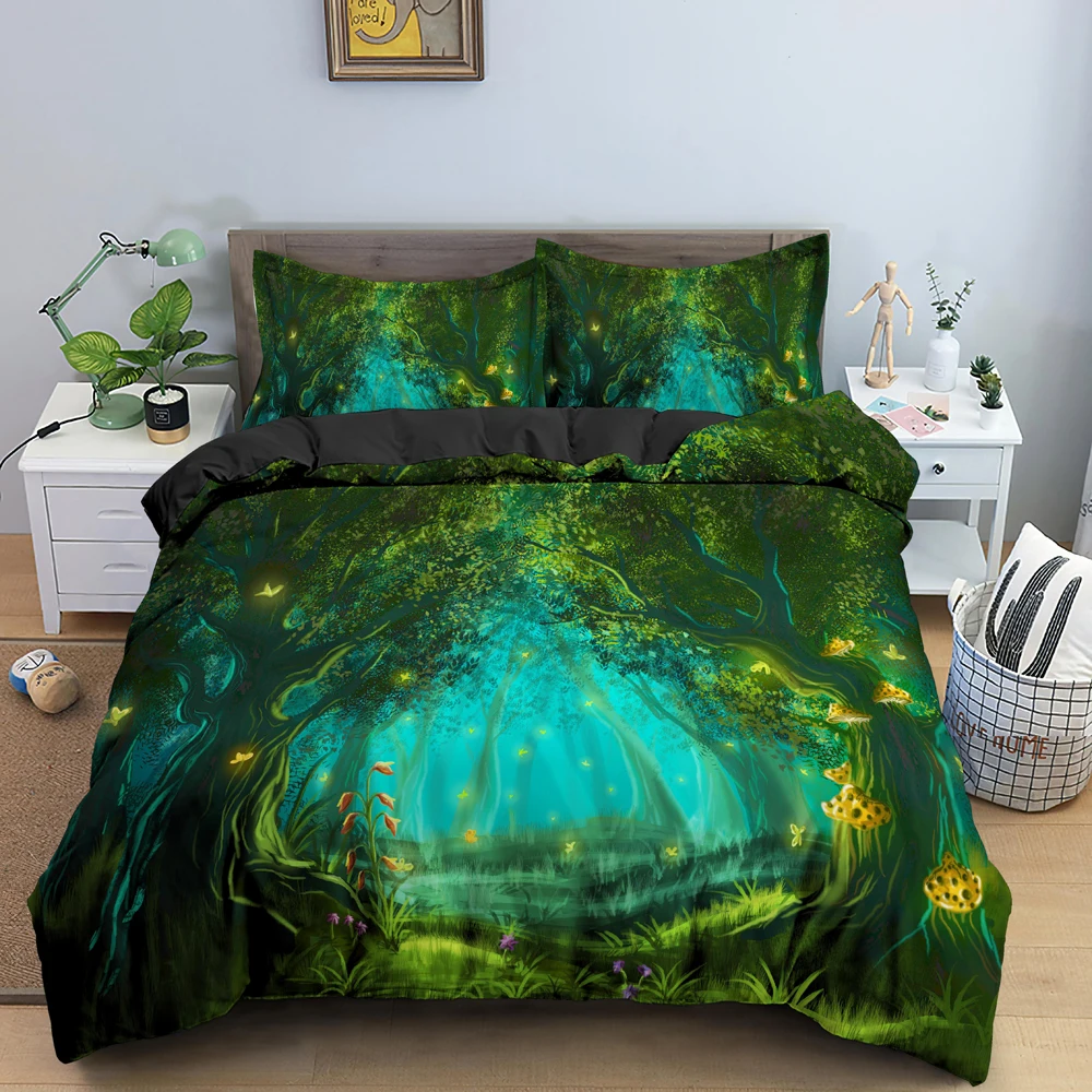 Комплект постельного белья с изображением сказочного леса, мягкий пододеяльник с наволочкой, пододеяльник размера TwinKingQueen, домашний текстиль