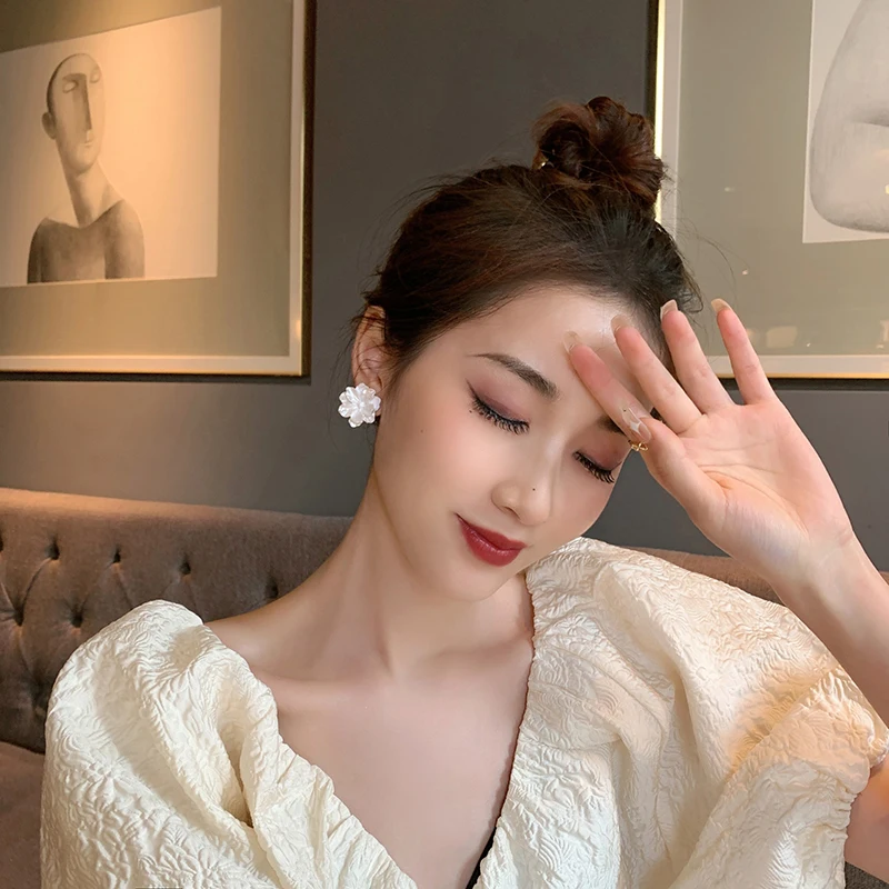 Серьги с белыми цветами индивидуальные корейские ювелирные изделия милые маленькие серьги-гвоздики с цветком для женщин 2021 новые модные милые серьги