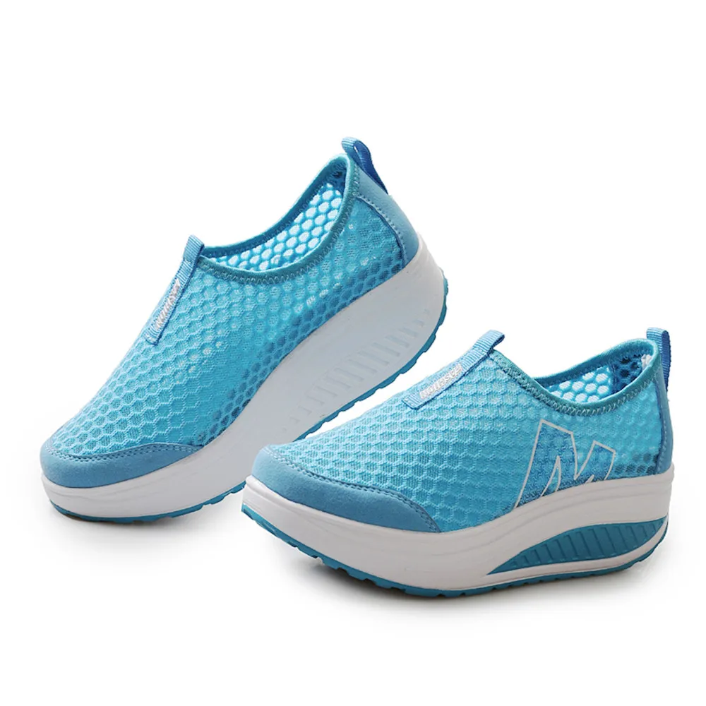Туфли женские сетчатые на платформе, дышащие лоферы, дышащая обувь на танкетке, плоская подошва, кроссовки