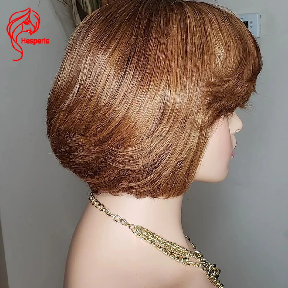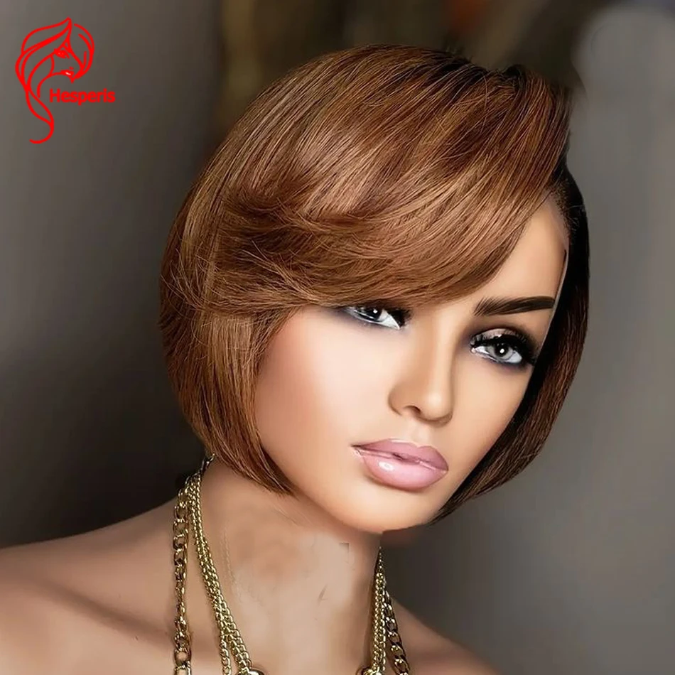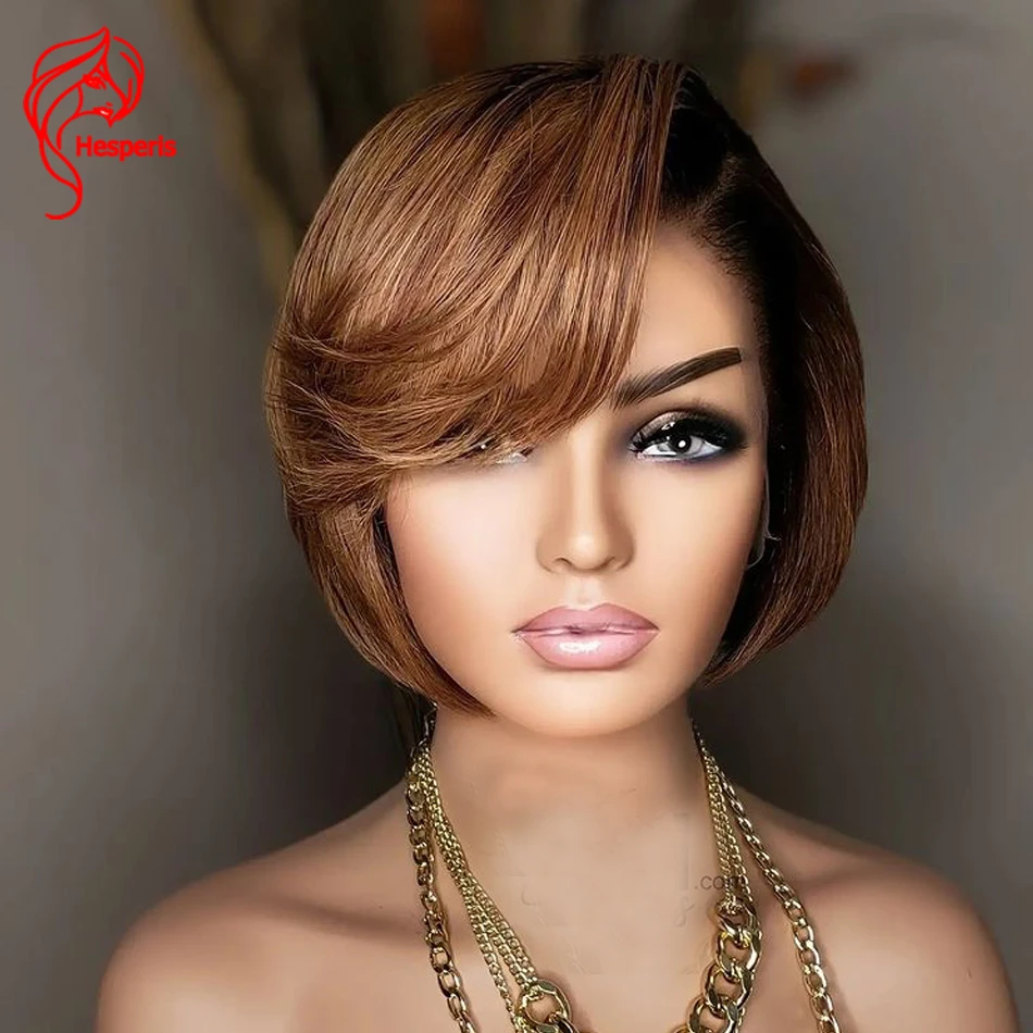 Hesperis Omber человеческие волосы парики Pixie Cut Короткий Боб бразильский Реми 1b/30 Цвет 13x1Deep часть кружева парик предварительно сорвал для черных женщин