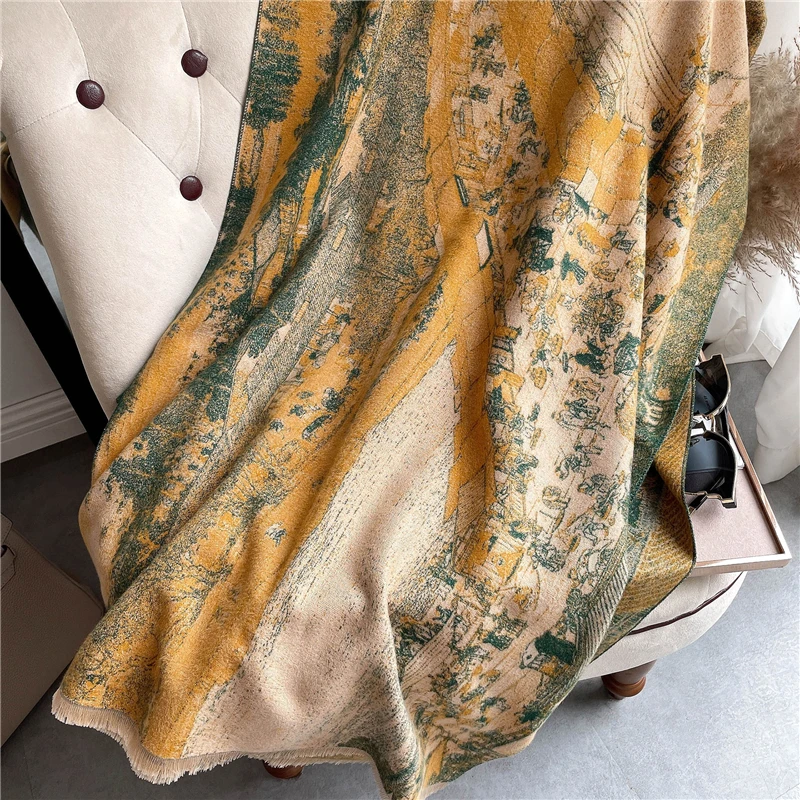 Толстые палантины, теплый кашемировый шарф, Зимние новые женские шали, Дамский дизайн, модное одеяло из пашмины с кисточками и принтом, 2021