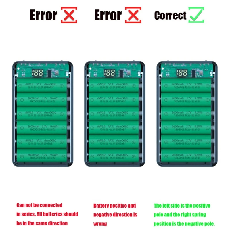 6*18650 Коробка для зарядного устройства для аккумулятора, держатель для внешнего аккумулятора, чехол с двумя USB и ЖК-дисплеем, поддержка QC 2,0 PD, быстрое зарядное устройство, чехол для аккумулятора, хранилище