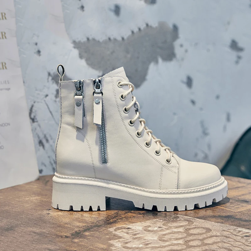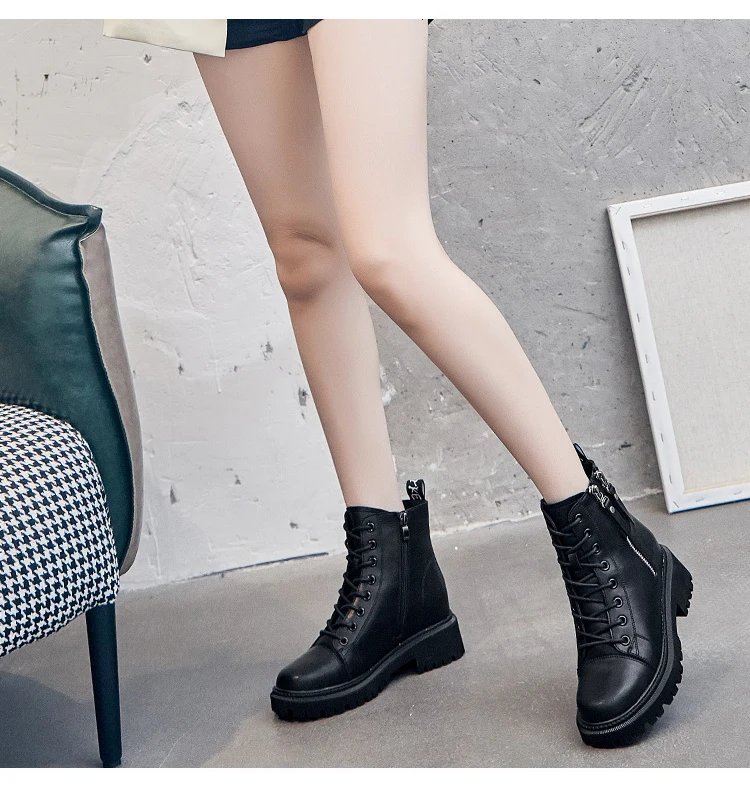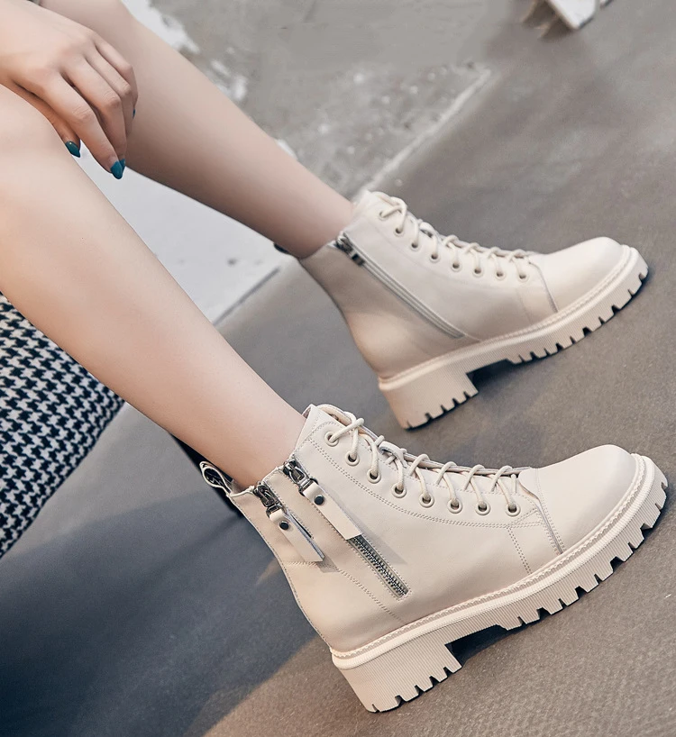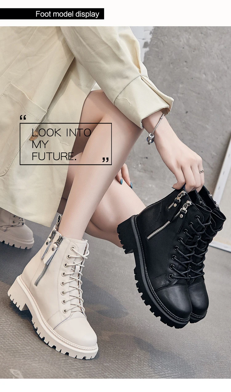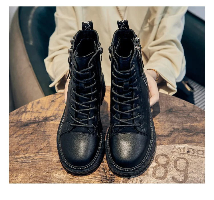 Ботинки из натуральной кожи, женские полуботинки мартинсы на платформе и каблуке, женская дизайнерская обувь, женские ботинки на массивной подошве для женщин, 2022
