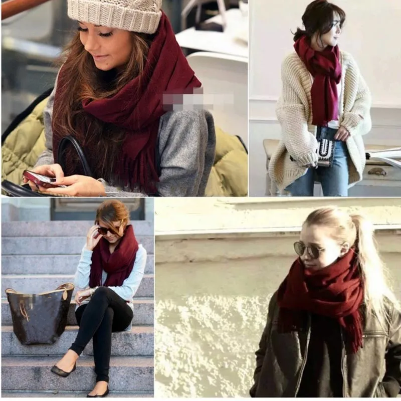 2021 модный однотонный женский шарф зимние хиджабы кисточки длинные...