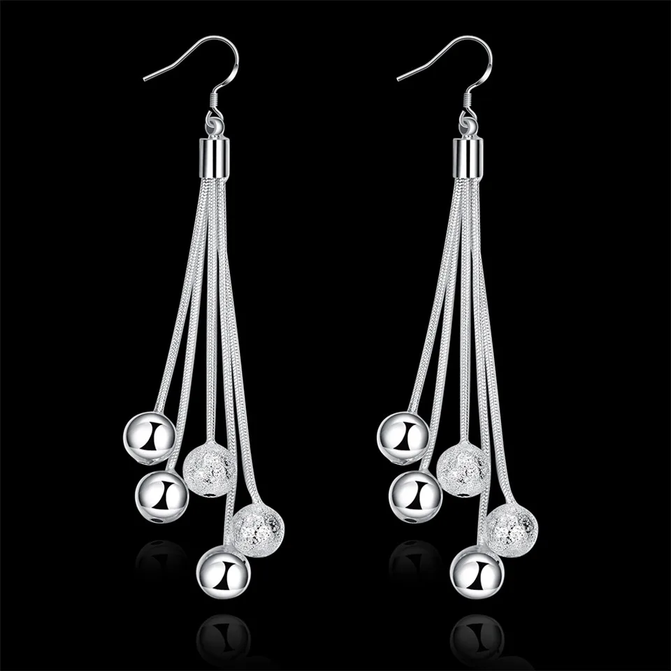 Женские длинные серьги из серебра 925 пробы, с бусинами-кисточками