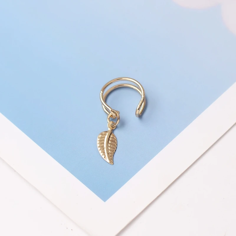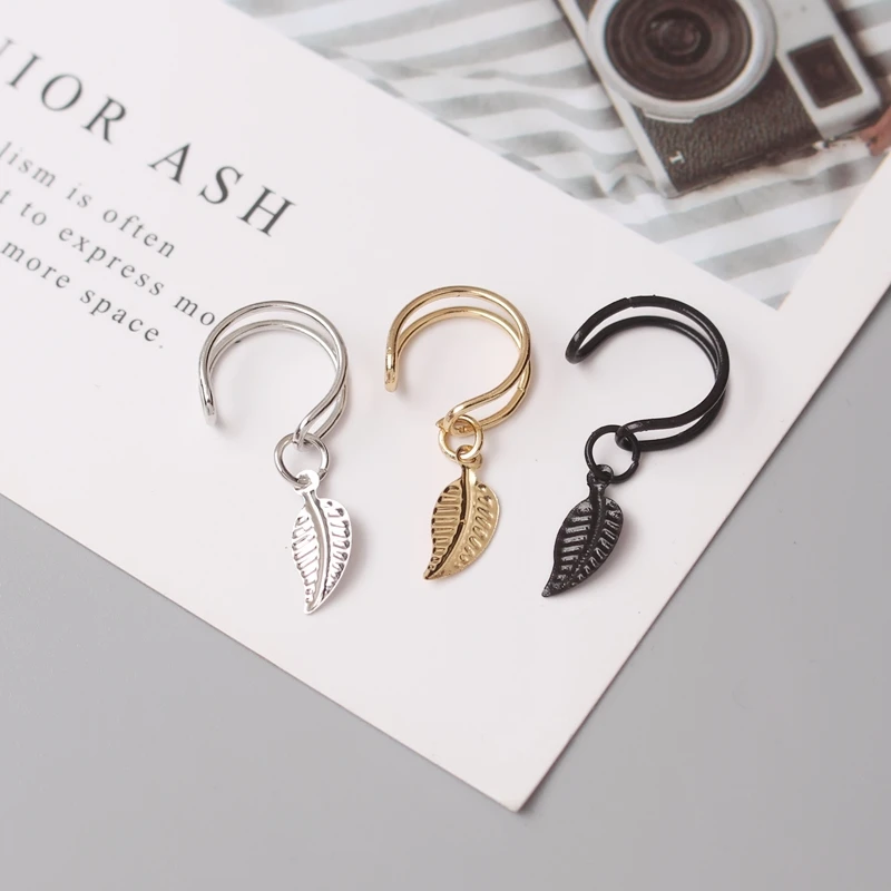 Серьги-клипсы женские без проколов, клипсы с листьями для хряща уха вечерние ринки, свадьбы, рождественский подарок