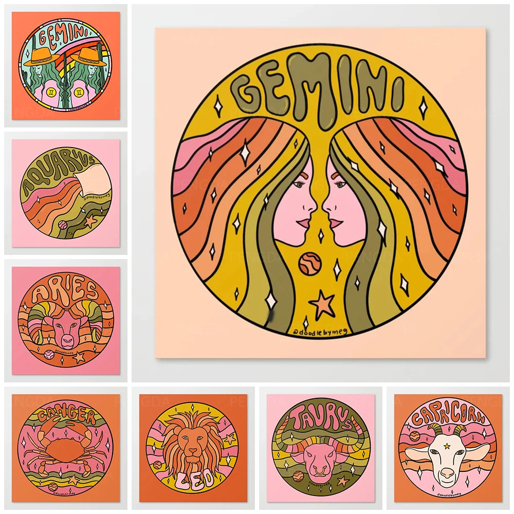 Плакат HD с изображением знаков зодиака, холст, квадратная картина на стену, акварель, украшение для дома, картина модульные работы с картинками гостиная
