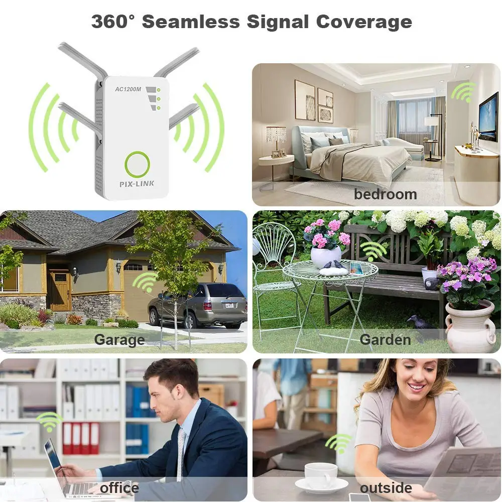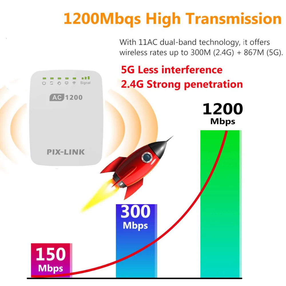 Беспроводной маршрутизатор PIXLINK AC1200, расширитель диапазона Wi-Fi, ретранслятор, усилитель сигнала 2,45 ГГц, двухдиапазонный AP WPS, сетевая точка доступа