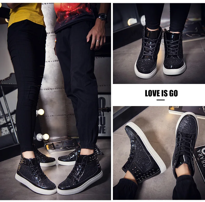 Кроссовки мужские, женские, мужские, высокие, с золотыми блестками,...