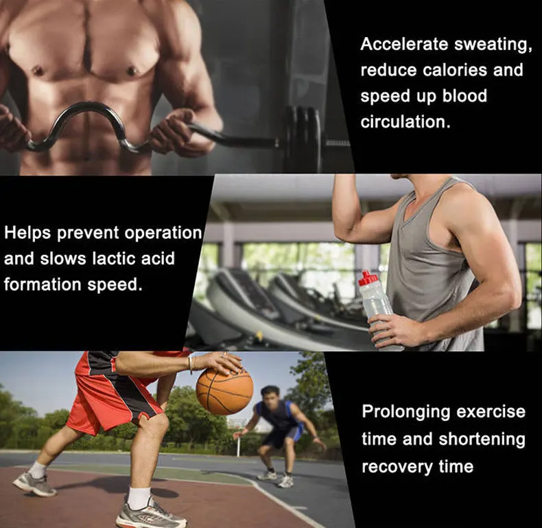 1. Ускоряет потоотделение, уменьшает количество калорий и ускоряет кровообращение.2. Помогает предотвратить операции и замедляет скорость образования молочной кислоты.3. Продлевает время упражнений и сокращает время восстановления