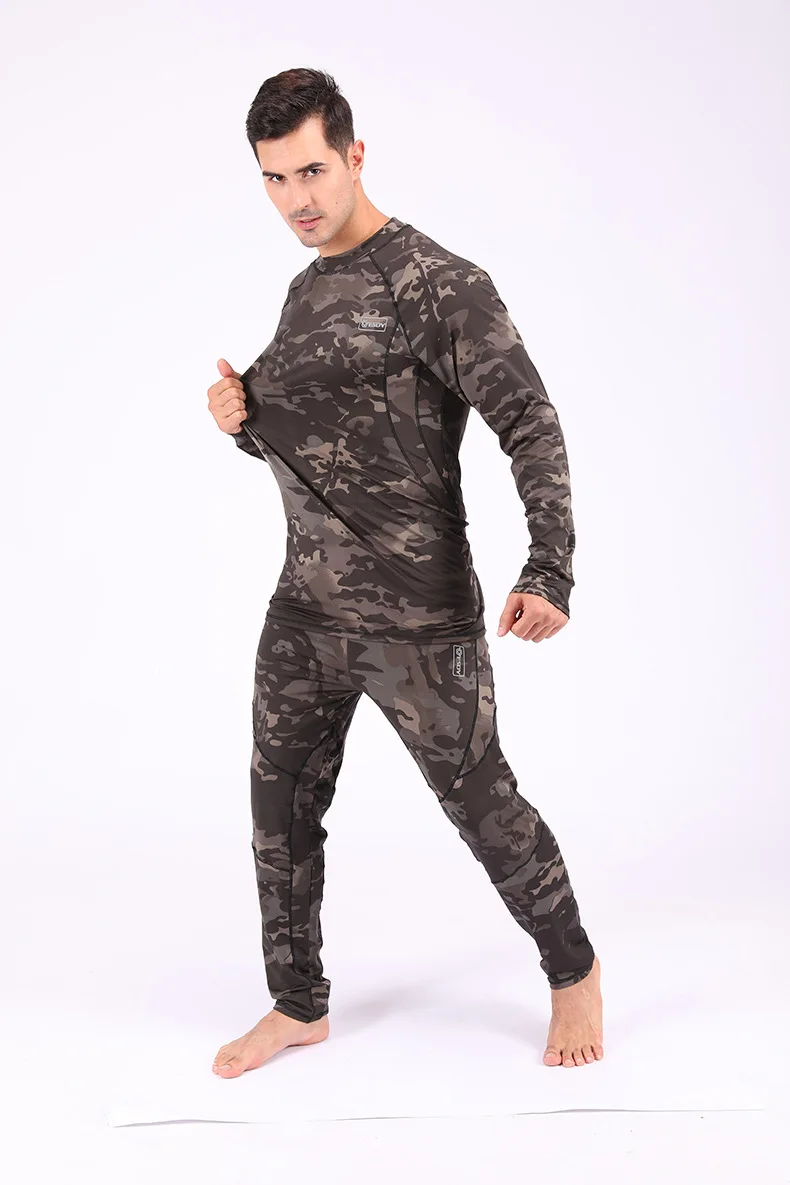 Мужские зимние камуфляжные комплекты термобелья, быстросохнущие тактические кальсоны, компрессионное нижнее белье для фитнеса, мужская одежда