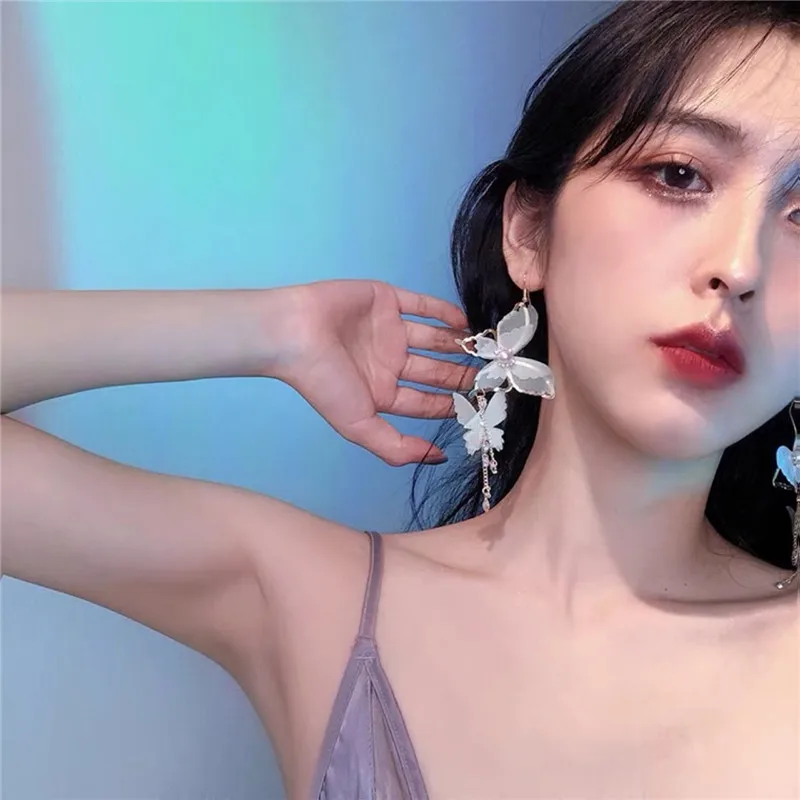 Длинные висячие серьги с бабочками и кисточками, женские серебряные серьги 2021, корейские Висячие женские серьги, модные вечерние ювелирные изделия, подарок, оптовая продажа