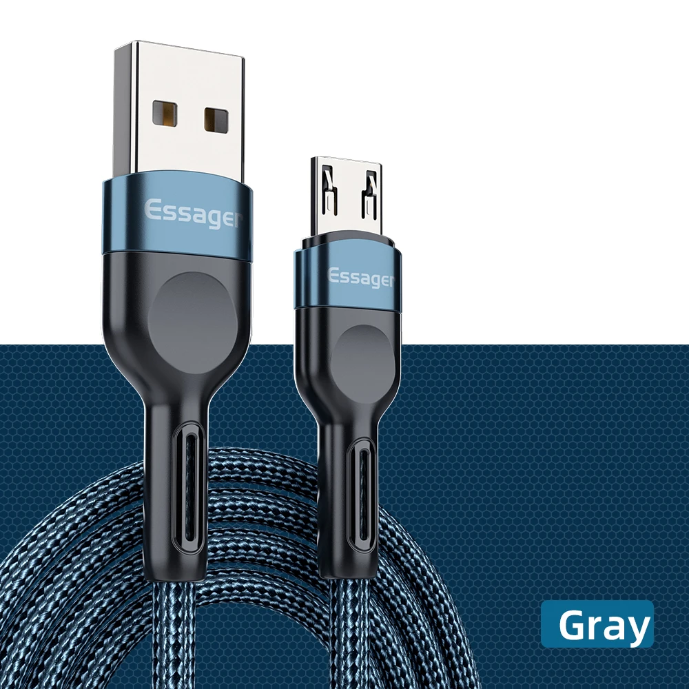 Кабель для зарядки Essager Micro USB, 2,4 А, плетеный кабель высоко...