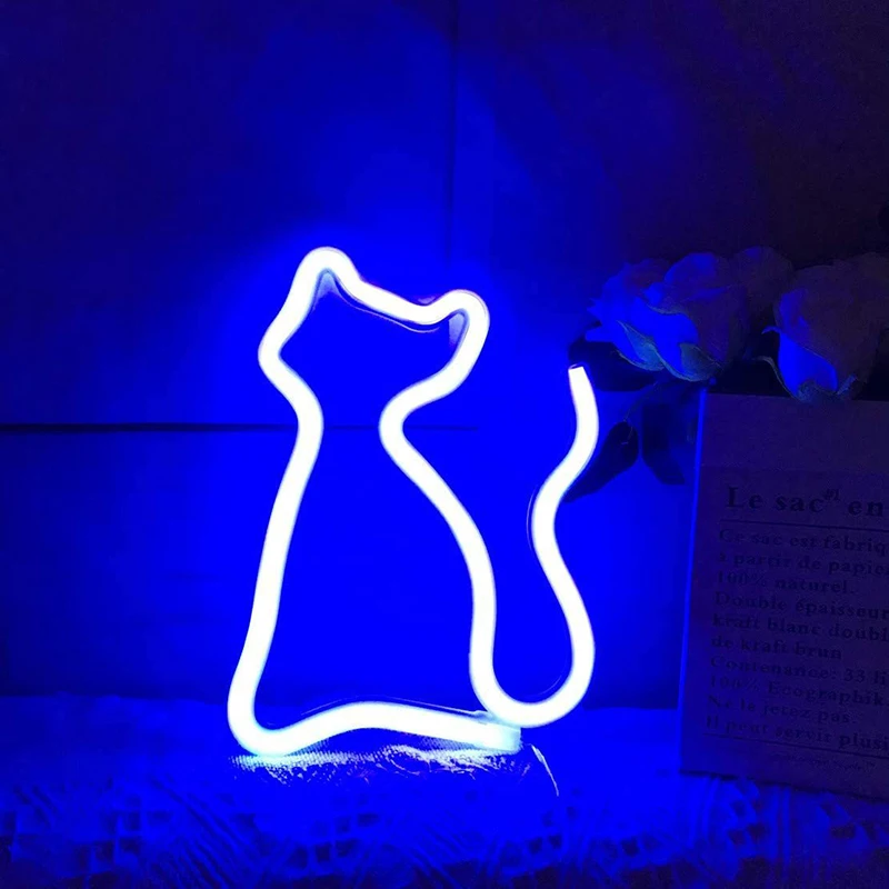 Милая неоновая вывеска в форме кошки, с питанием от USB и батарейки, украшение для дома, светодиодный ные ночные светильники на стену