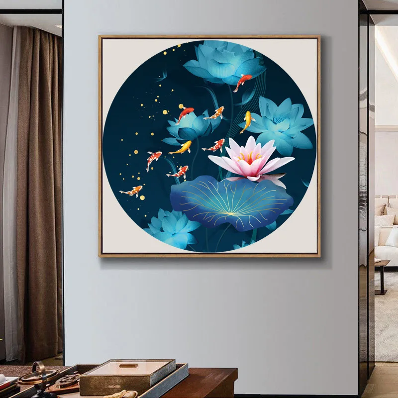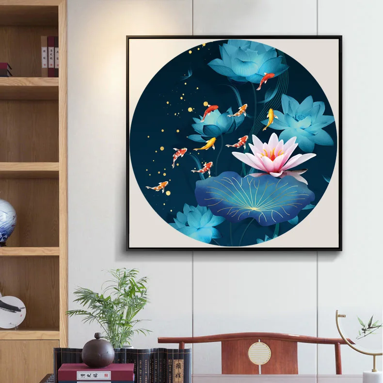 Вышивка крестиком, 50x50 см, наборы для вышивки, вышивка крестиком, шелковые рыбки, лотос