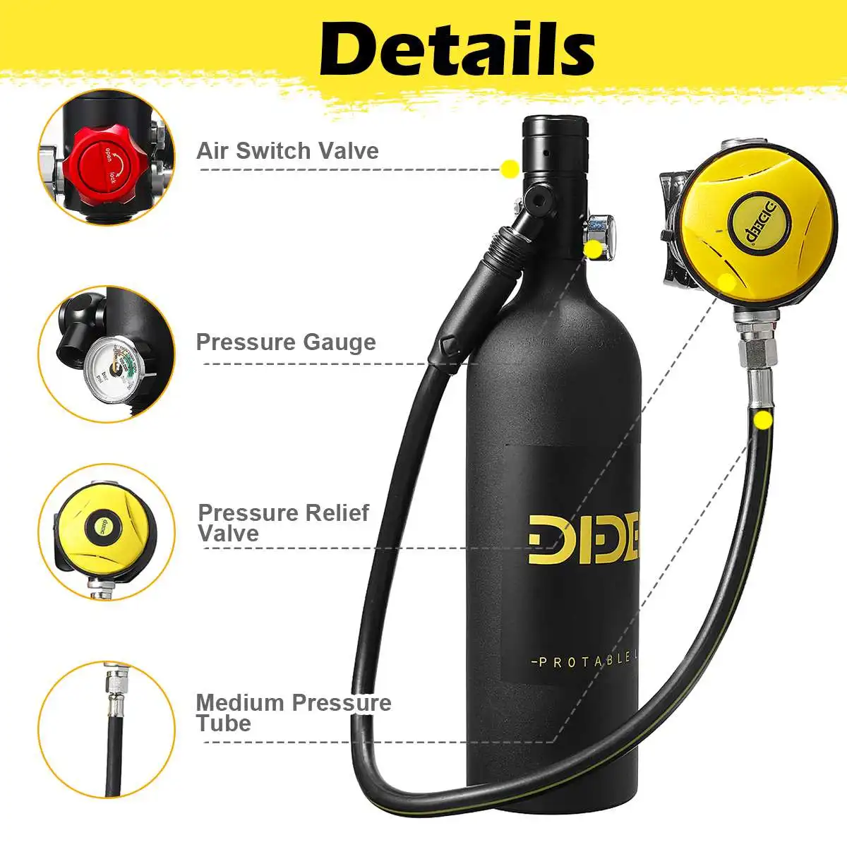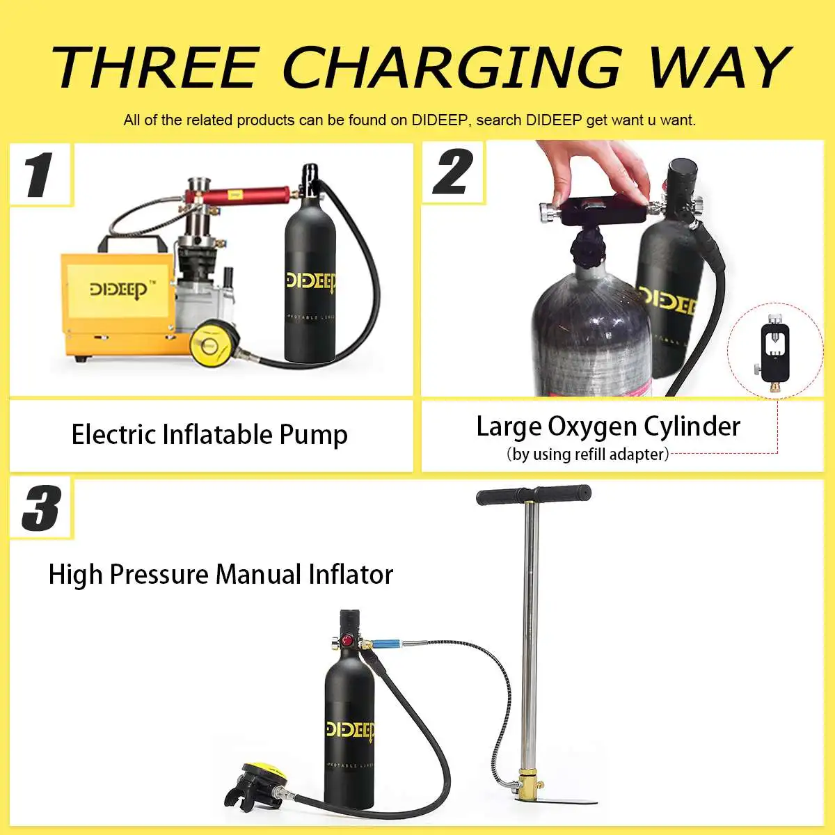 DIDEEP 1 л баллон для подводного плавания, мини кислородный резервуар, комплект, респиратор, воздушный резервуар, ручной насос для снорклинга, дыхания, оборудование для дайвинга