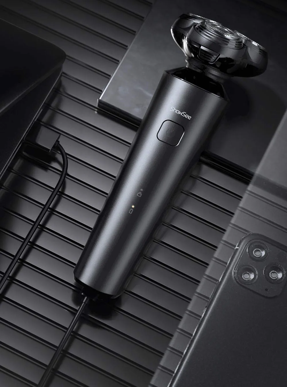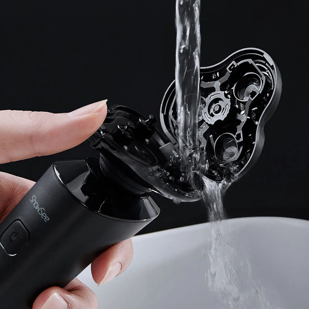 Showsee электробритваЧистое бритье, удобный опытКавасаки сталь | Независимая плавающая 3 три режущая головка |Высокая мощность | Сухое и влажное двойное Бритье Плавающее бритье с тремя головкамиСталь KawasakiМощность 5 ВтIPX7 стирка телаБыстрая зарядка типа C60 минут долгий срок службы батареи