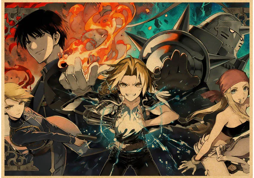 Цельнометаллический постер алхимика винтажная мультяшная крафт-бумага Высокое качество японское аниме Художественная печать настенные наклейки декоративная живопись