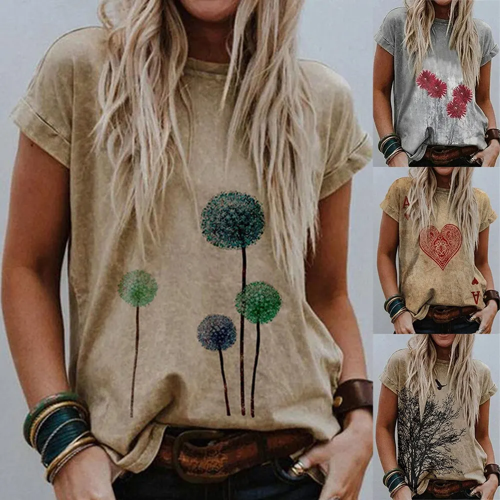 Футболка женская с коротким рукавом, винтажный Повседневный пуловер...