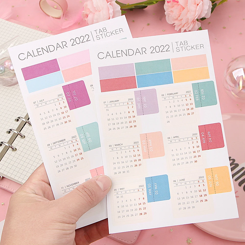 2 листа 2022 календарь блокнот индекс наклейки функциональный планировщик ежемесячный график повестки дня закладки канцелярские наклейки