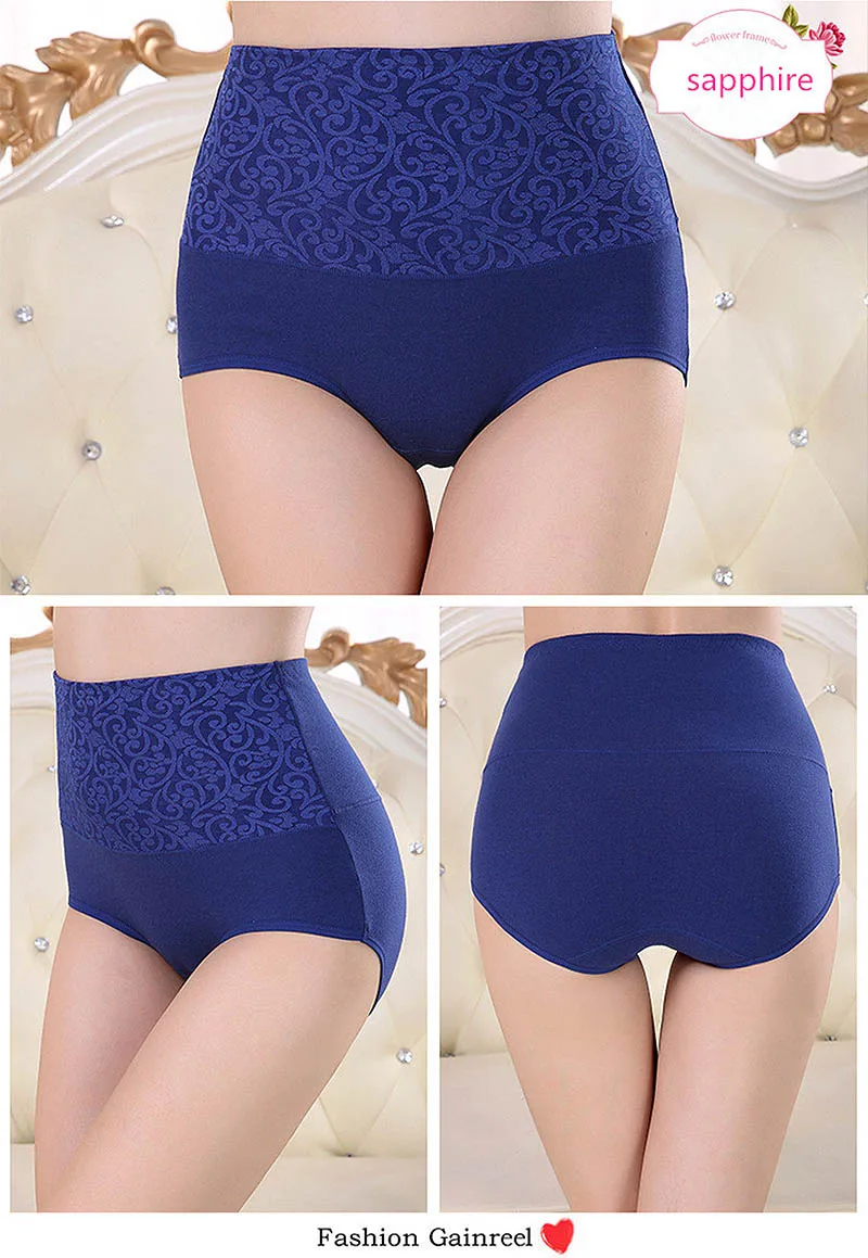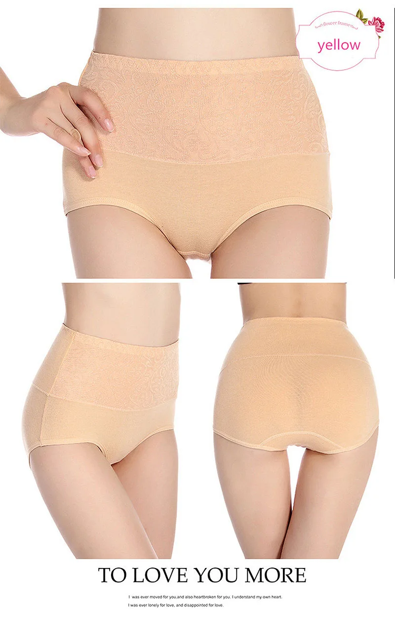Размера плюс трусики женское нижнее белье с высокой талией; Хлопков...