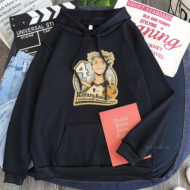 Худи Haikyuu в стиле аниме Харадзюку, винтажные мужские зимние толстовки с героями мультфильмов Fukurodani, Spiker No. 4 Kotaro Bokuto, волейбольный клуб