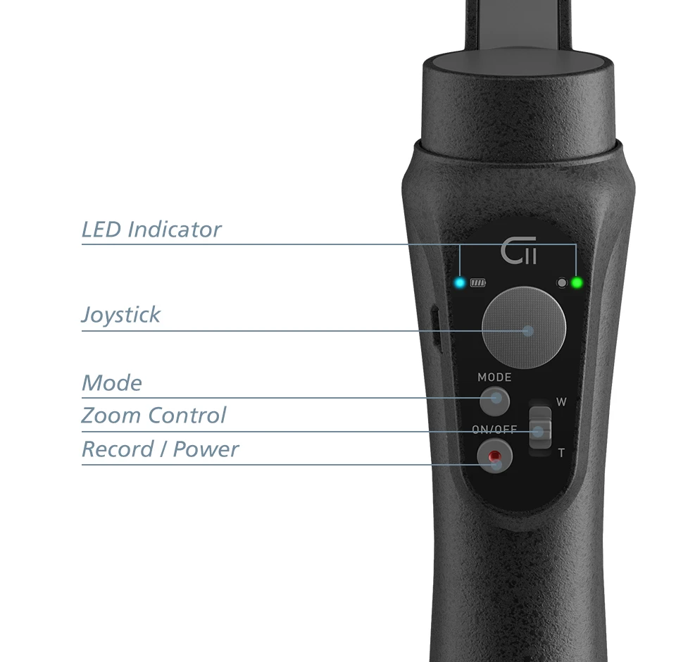 C11 поставляется с небольшим корпусом, но превосходной емкостью. Встроенный аккумулятор поддерживает до 12 часов работы, также он поддерживает зарядку телефона с помощью usb-порта под ручкой. Вы можете снимать на улице, не беспокоясь о утечке энергии. Стандартный usb-порт позволяет заряжать ваш смартфон во время съемки с выходным питанием 5 В/2 А.