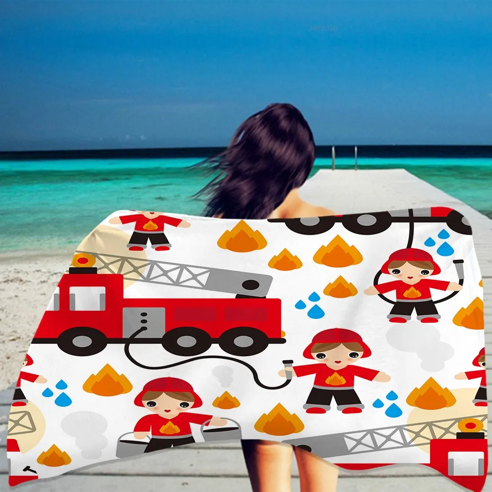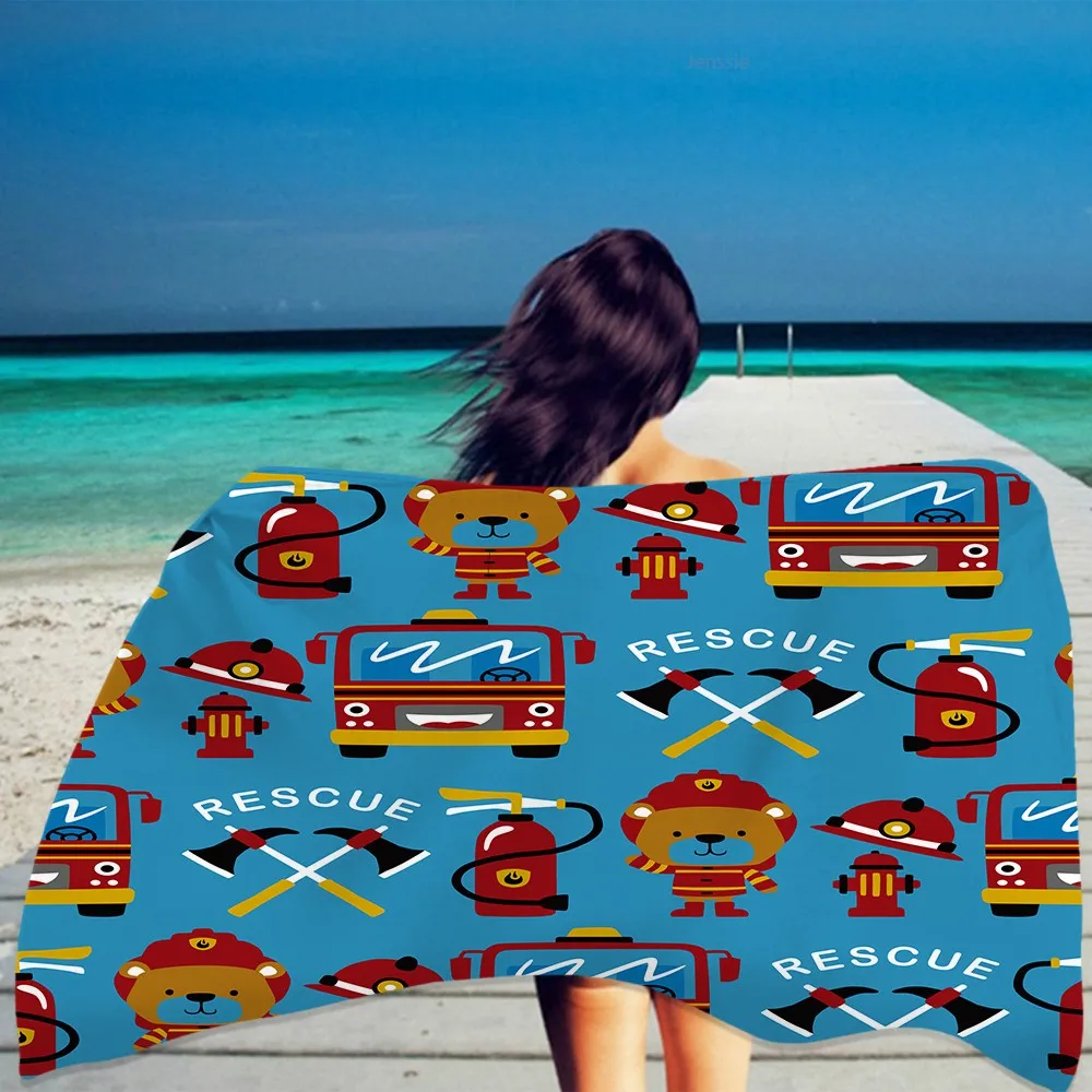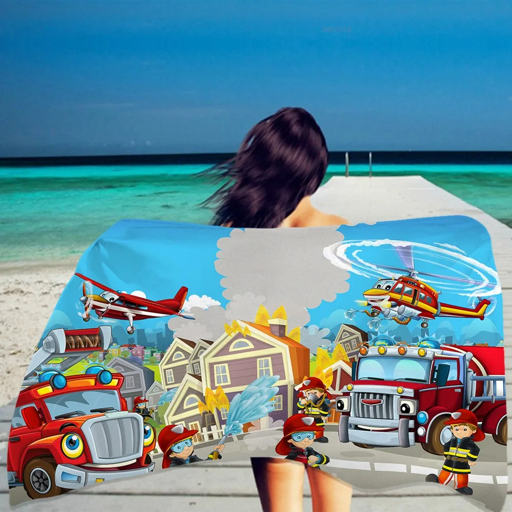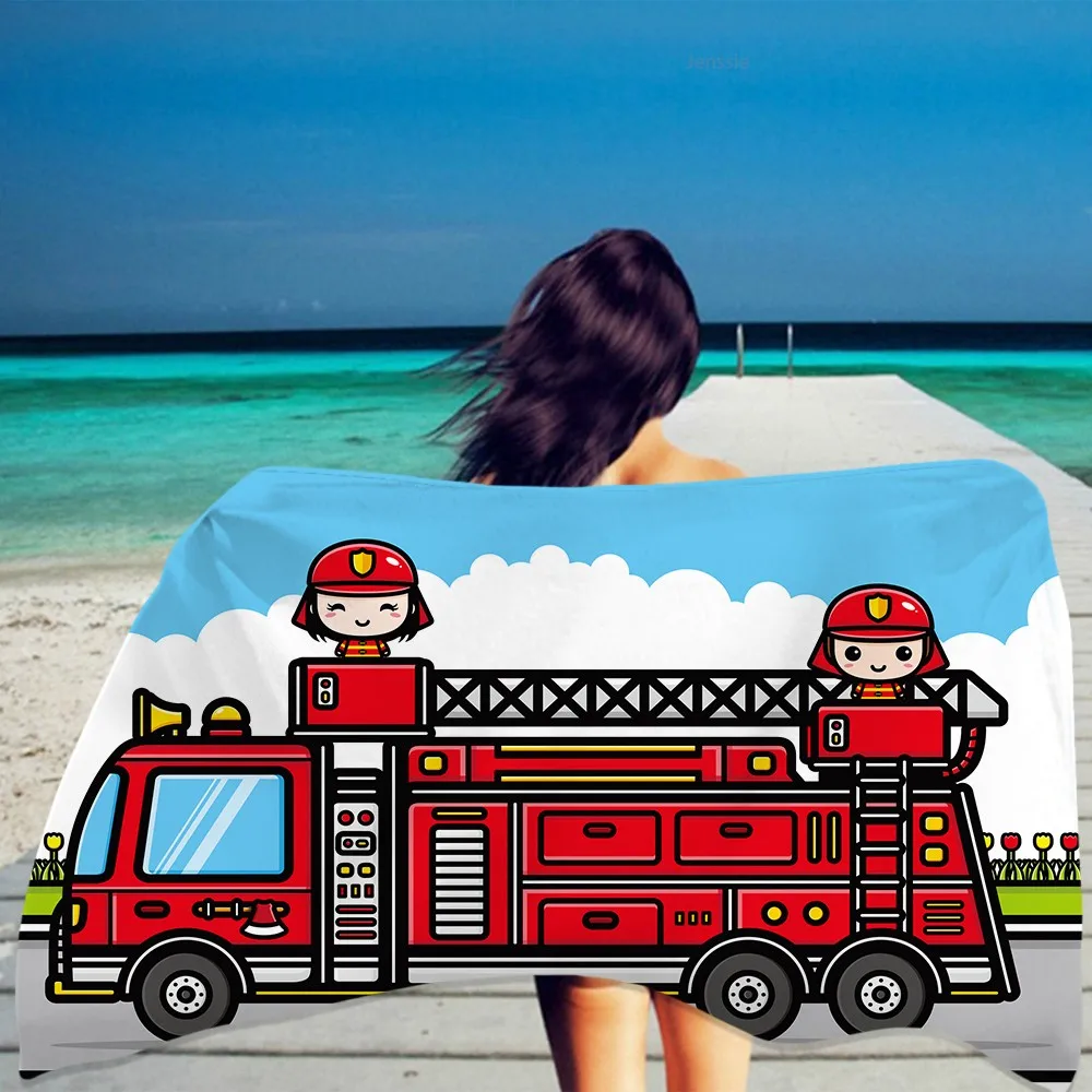 Прямоугольное пляжное полотенце из мягкой микрофибры с 3D-принтом для пожарной машины вертолета грузовика и внедорожника