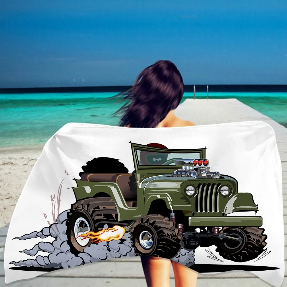 Пожарная машина вертолет грузовик печать прямоугольник пляжное полотенце внедорожный автомобиль 3D печать мягкое микрофибра банное полотенце для душа