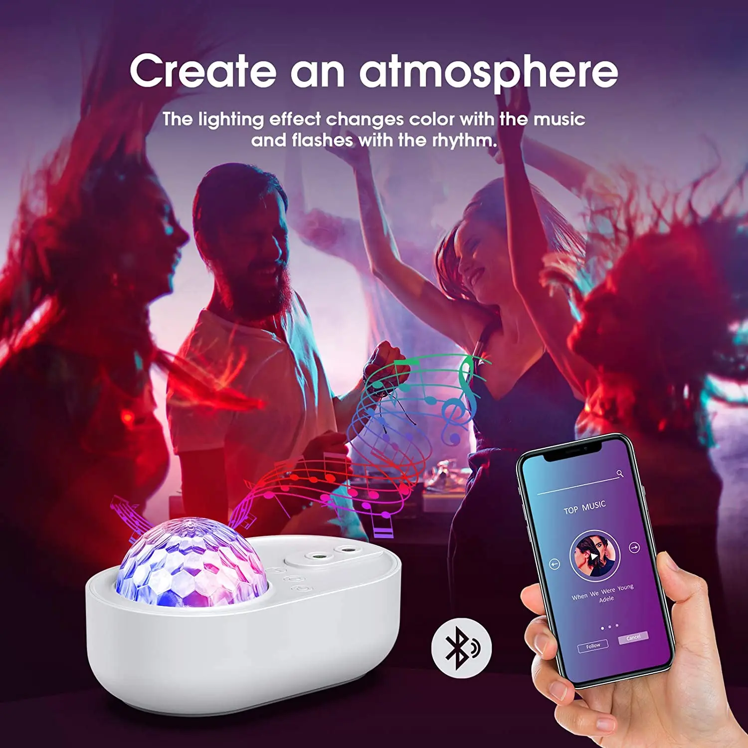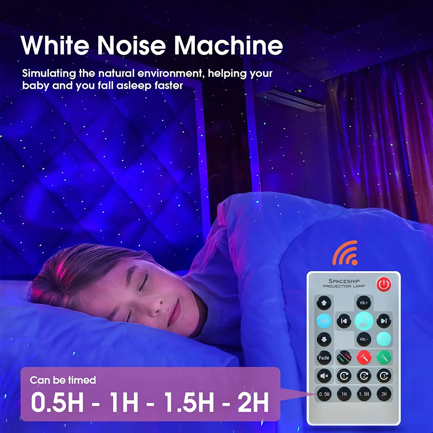 Многофункциональный3 вида красных и зеленых лазерных узоров (зеленый светильник с функцией дыхательной лампы, от темного до яркого цикла);10 гофрированных проекционных узоров (10 режимов-автоматический градиентный светильник);3 вида встроенного белого шума, компаньон для сна; Подключите мобильный телефон к Bluetooth, Воспроизводите музыку, И огни следуют музыкальному ритму и мерцанию; Пульт дистанционного управления имеет четыре функции синхронизации.