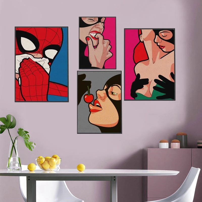 Картины на холсте с героями мультфильмов Марвел, Человек-паук, забавные сексуальные женские плакаты и принты, настенные картины для гостиной, домашний декор