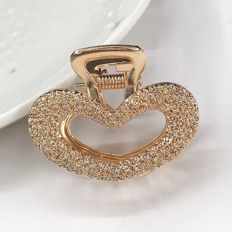 Модные заколки для волос, женские заколки-крабы золотого цвета, корейские заколки для волос, аксессуары для волос для девочек, блестящие заколки-крабы в форме банта и сердца