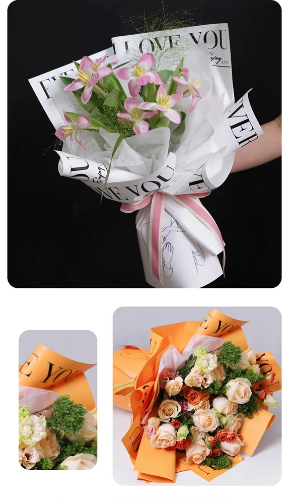 Водонепроницаемый бумажный материал:Не беспокойтесь о воде при обертывании цветка, этот материал изготовлен из водонепроницаемого материала, чтобы украсить ваш букет. Благодаря уникальному материалу его трудно оторвать, и он может сделать ваш букет более высококлассным.