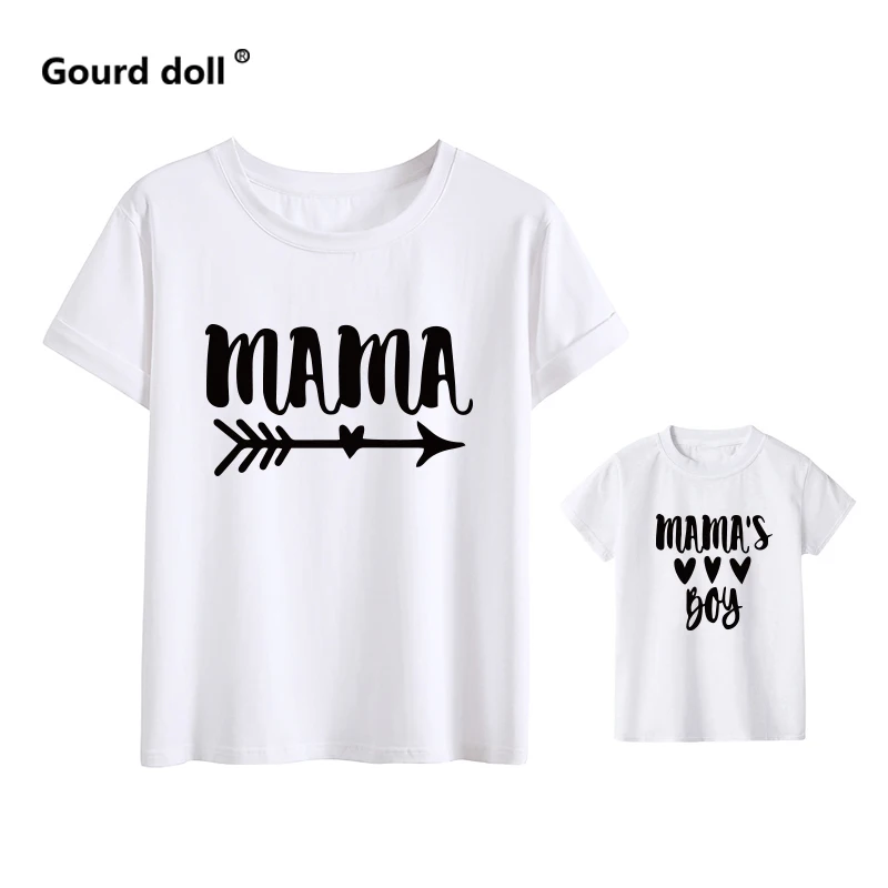 Летняя сочетающаяся с семьей короткая футболка с принтом для мамы и мальчиков Модная хлопковая футболка для мамы и девочки и сына детская одежда