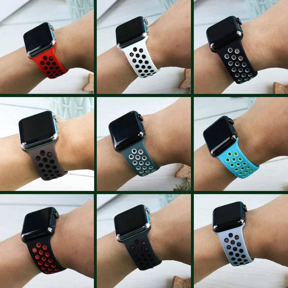 Ремешок спортивный для Apple Watch Band 6 SE 5 4 44 мм 40 мм, силиконовый Воздухопроницаемый браслет для iWatch Watch Series 54321 38 мм 42 мм