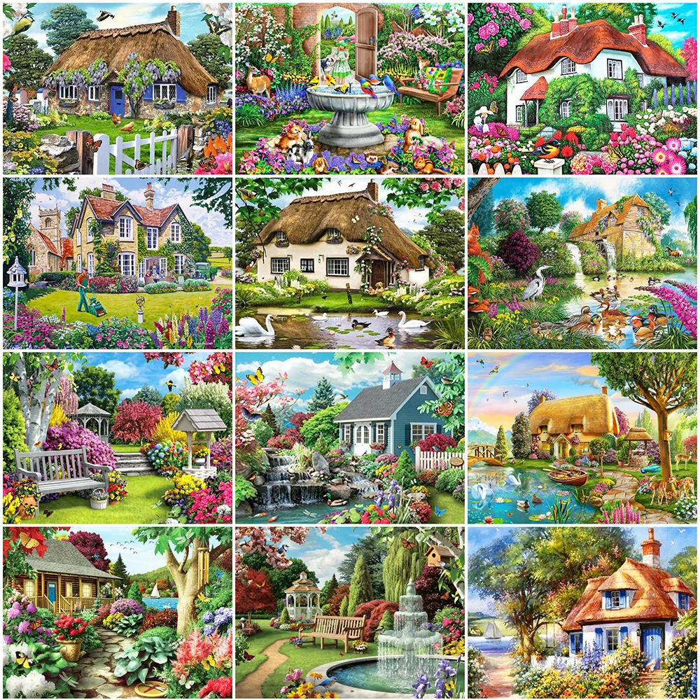 5D алмазная живопись сделай сам, садовый пейзаж, алмазная вышивка, Набор для вышивки крестиком, мозаика, домашнее украшение, рукоделие