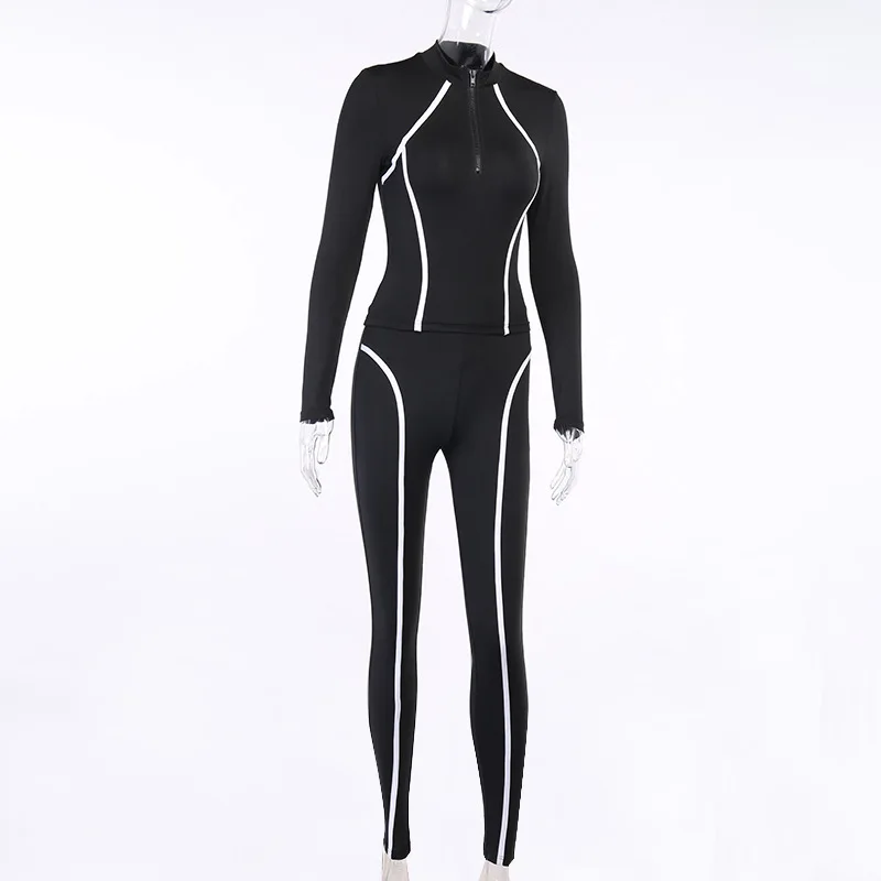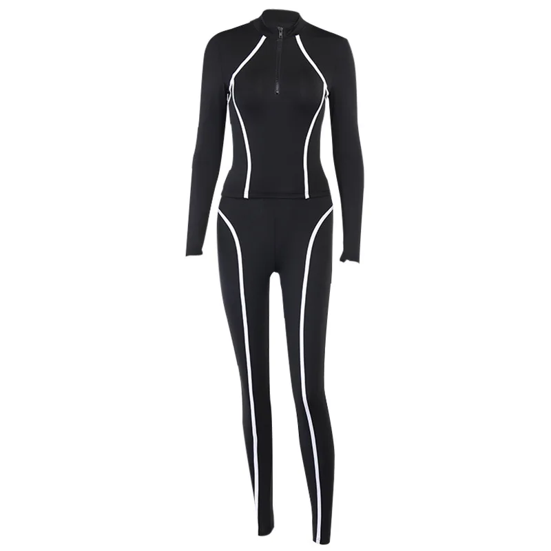 Осенний лоскутный Топ с длинным рукавом и длинные брюки женские Разноцветные полосатые уличные модные облегающие дышащие сексуальные спортивные штаны для йоги