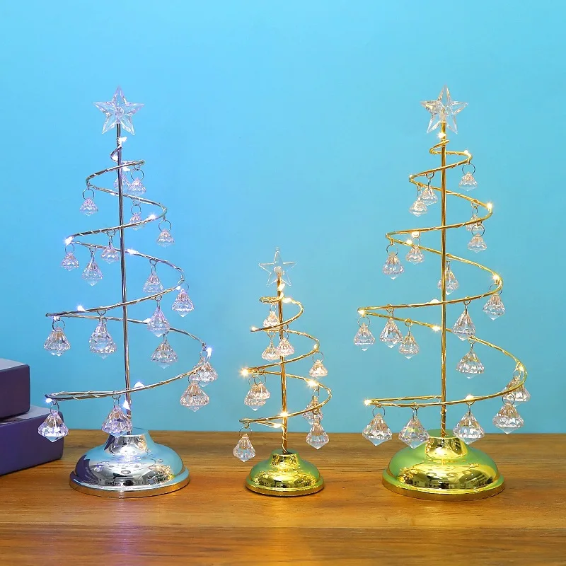 Хрустальное освещение для рождественской елки, металлическая елка с акриловой подвеской, светящееся украшение, подарок на Новый год для праздника JS22