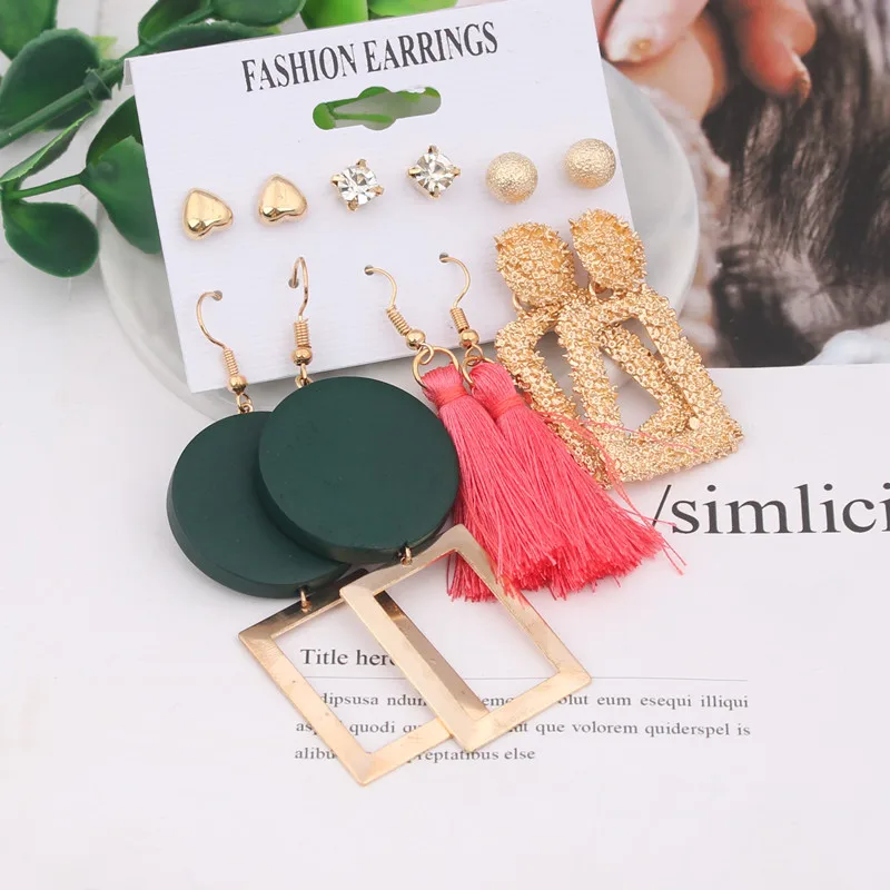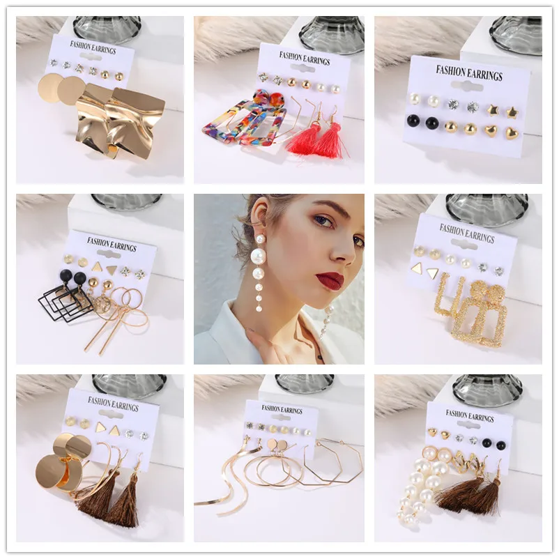 Винтажные серьги-гвоздики с искусственным жемчугом для женщин, набор геометрических металлических сережек ручной работы с кисточками в богемном стиле, ювелирные изделия, подарок для девушки
