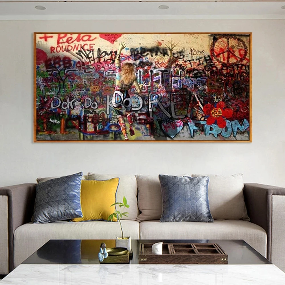 Граффити настенное искусство Уличная Сексуальная девушка плакат художественные принты холст живопись Современная гостиная домашний декор картины без рамки роспись
