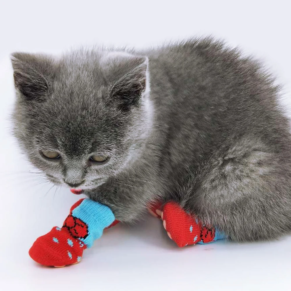 4 шт.компл. Милая теплая обувь для собак и кошек противоскользящие вязаные носки розовые питомцы обувь для щенков котят для маленьких и средних собак кошек чихуахуа собак