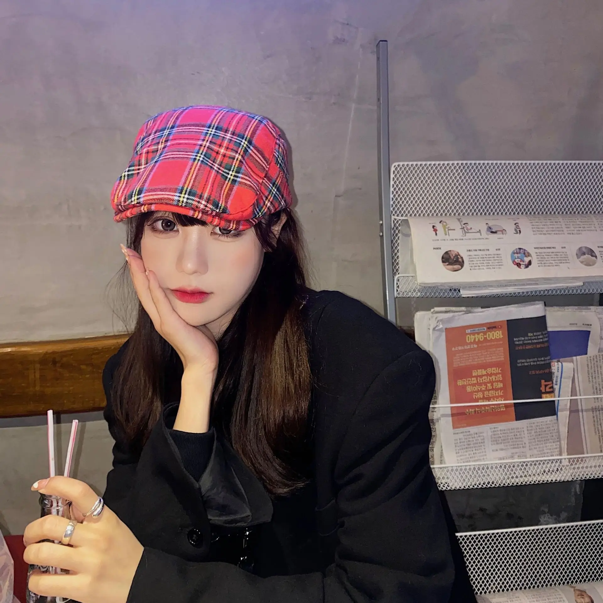 Шапка в французском стиле, клетчатый берет, Женская весенне-летняя ...