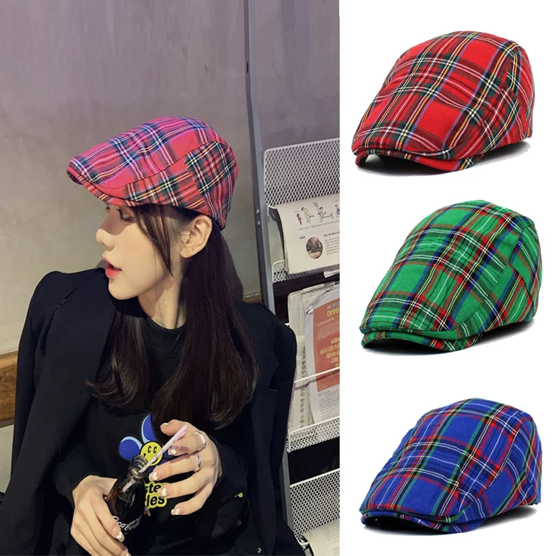 Модные Полосатые береты в клетку для женщин и мужчин, весенне-летние клетчатые береты в красную, зеленую, синюю клетку, плоская шапка в елочку, унисекс