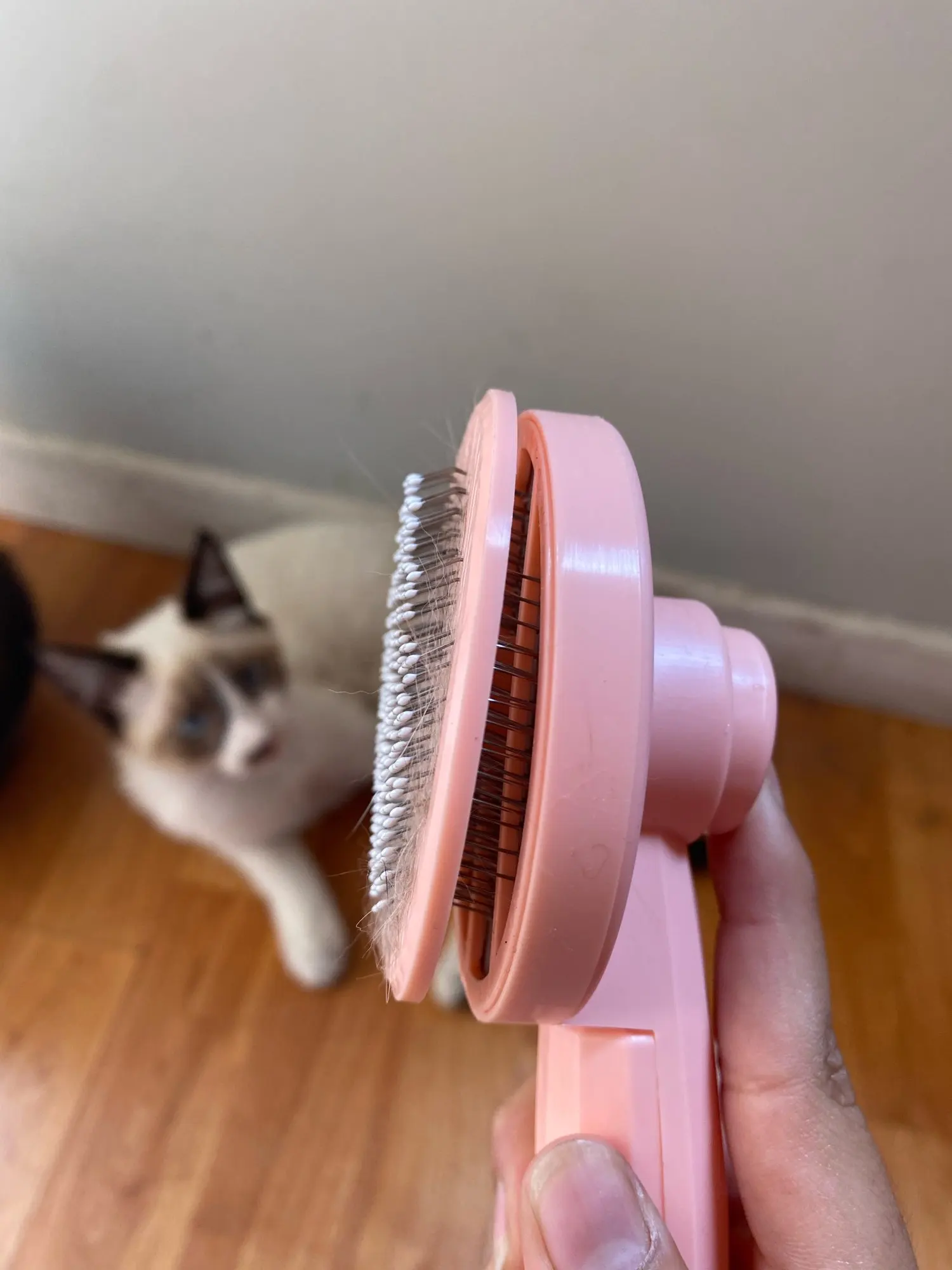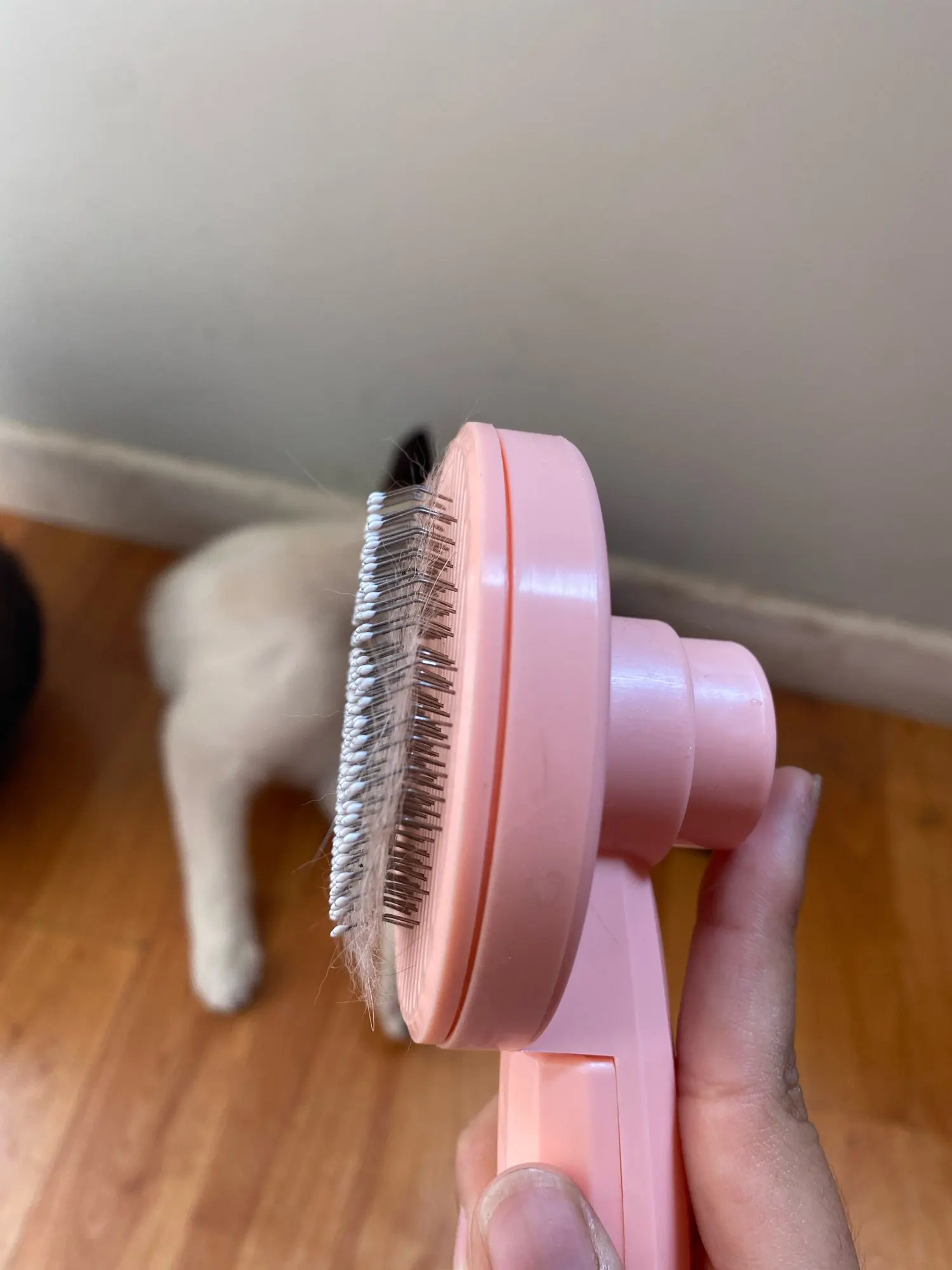 Мы купили его для моей кошки, но он не работает много, ха-ха, я думаю, что ее волосы очень тонкие и плохо прилипают к расчески, но с моими собаками это работает отлично, кроме того, им очень нравится, что они расчесывают их, и их легко чистить, отличный продукт