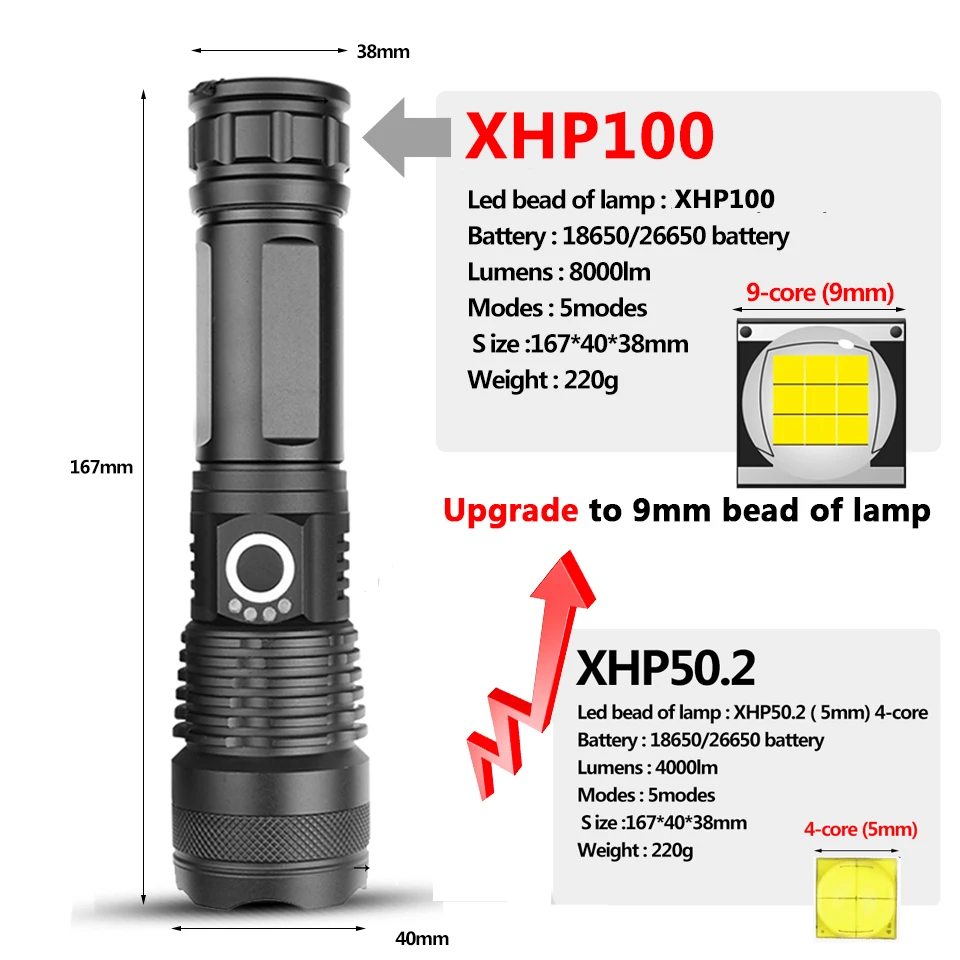 Xhp100 9-core высокое качество светодиодный фонарик 18650 26650 AA ...