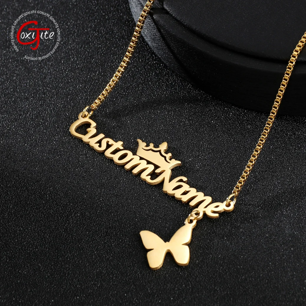 Goxijite, новое женское ожерелье с именем под заказ, персонализированная бабочка, подвеска с именем короны, именем, ожерелья, лучшие ювелирные изделия, подарок