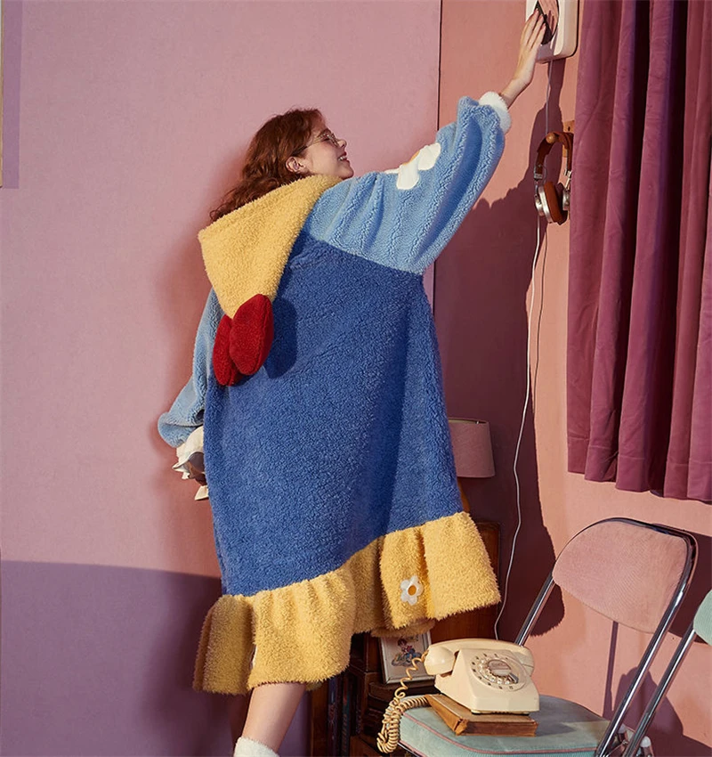 Пижама принцесса Женская на весну, осень и зиму, бархатная Пижама кораллового цвета, новинка, толстая, симпатичная, бархатная ночная рубашка для студентов
