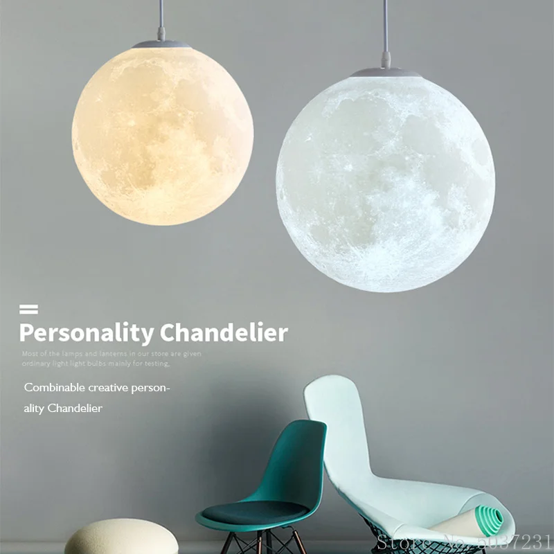 Люстра в скандинавском стиле с 3D принтом Луны, простой светильник ...